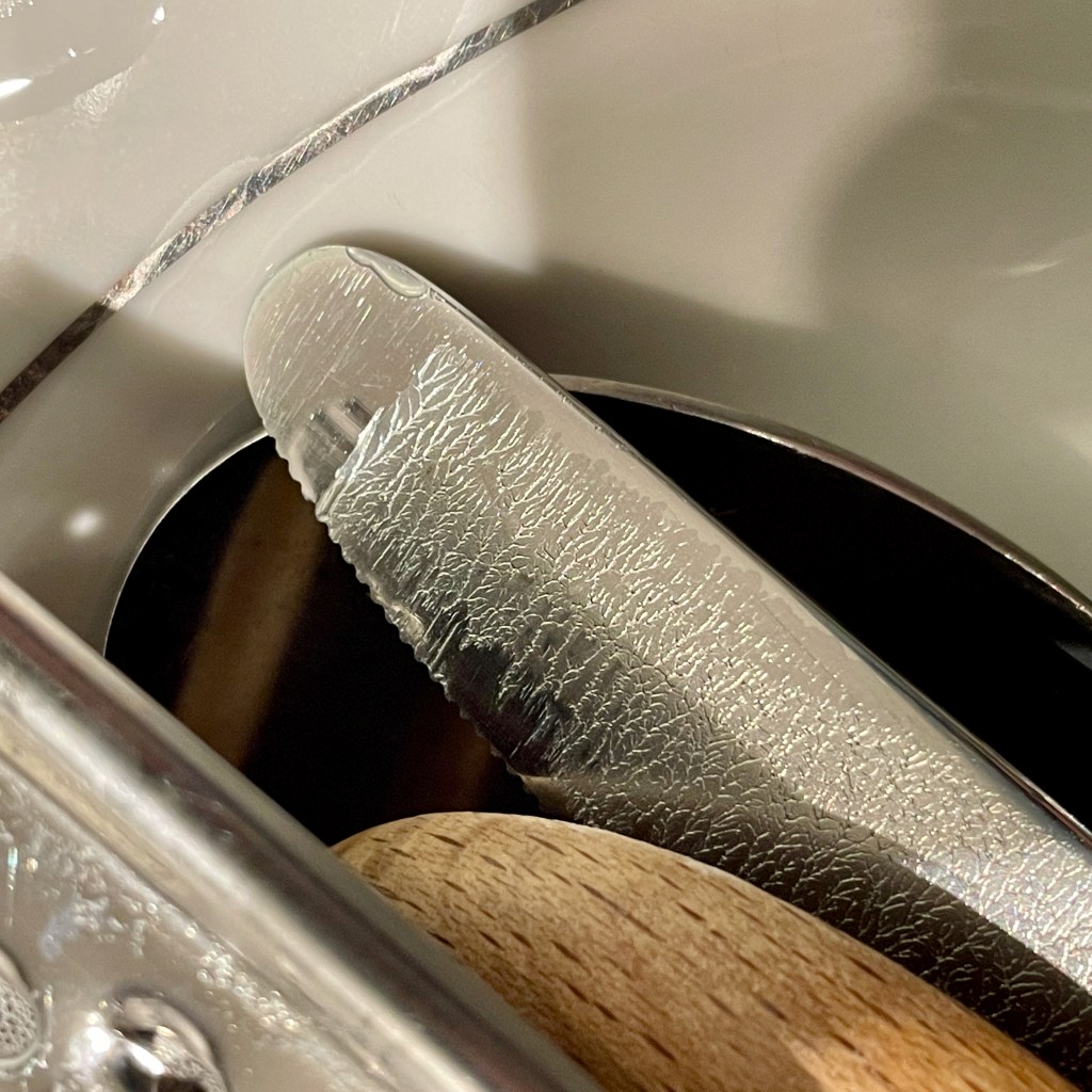 The universe decided to gift me with a wonderful fractal pattern when I cut into a block of butter with this knife.